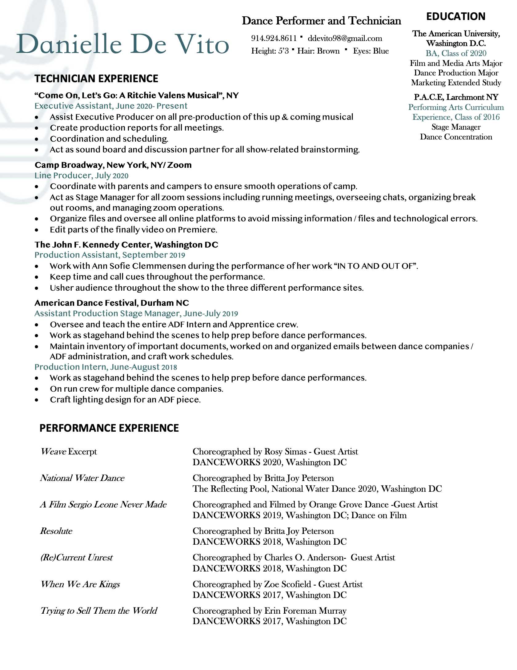 I am a contemporary dancer who navigates the exchange between precision, strength, and levity. I engage with dance both as a mover and a creatively engaged mind. I’m invested in work that pushes both the physical and mental boundaries of what dance can do. If you would like to know more about how dancing weaves into my greater artistic practice, you can check out my full artistic statement by clicking below!